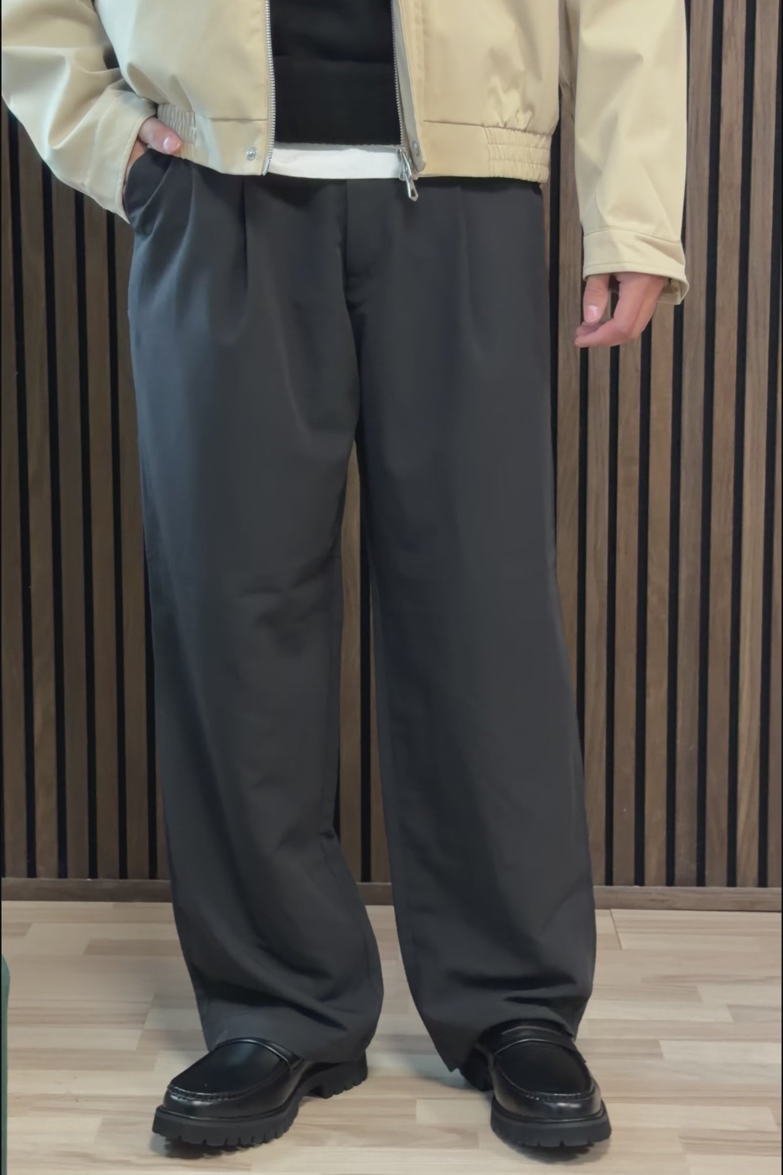 - Bukserne har læg foran, samt lommer både fora og bagå