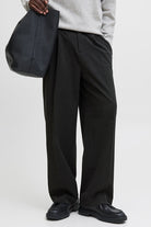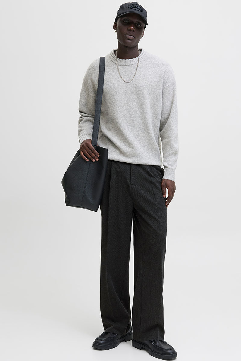 - Bukserne har snører i livet samt krog og øjelukning samt lynlås