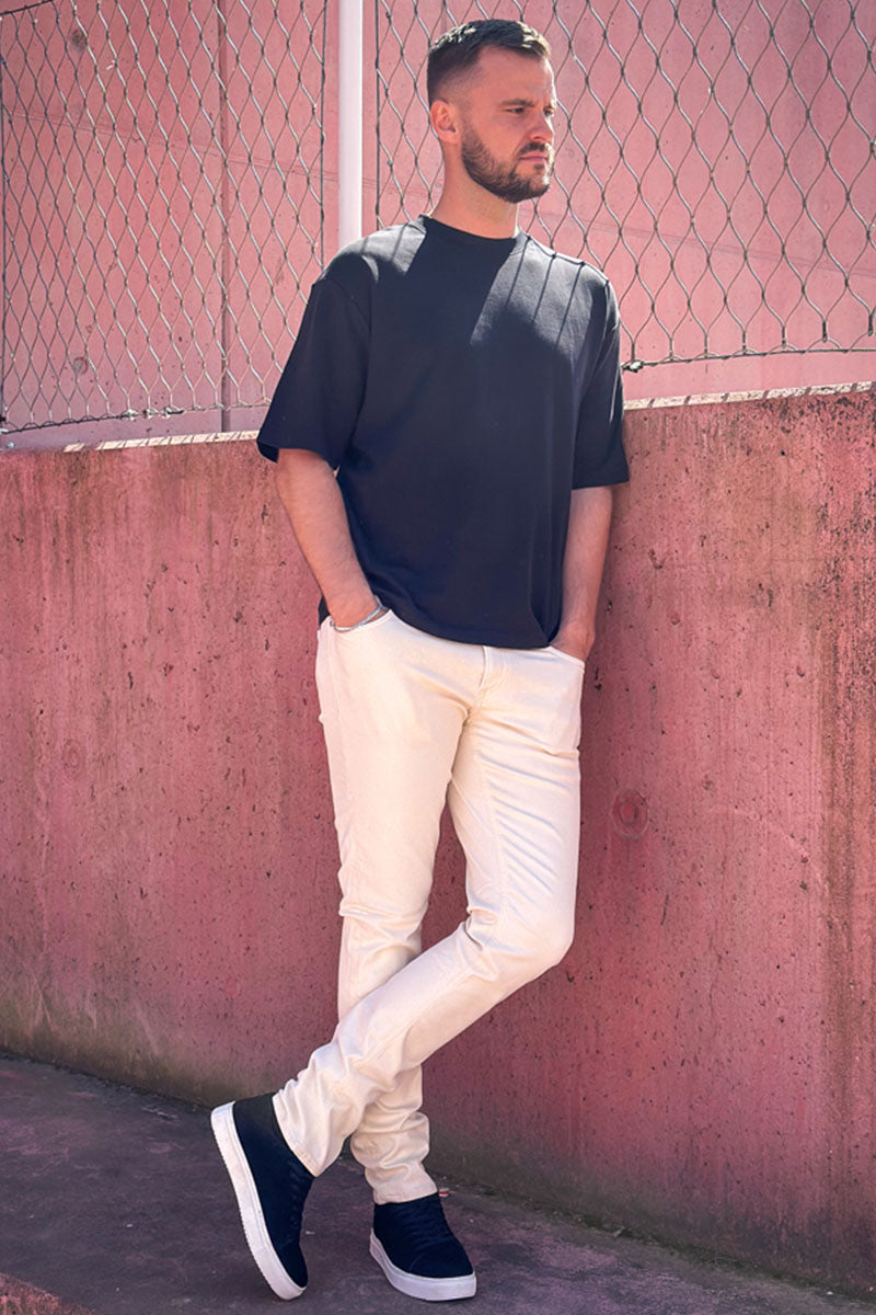 Et par jeans i beige denim kan være med til at pifte ethvert look op, og tilføjer en smule kant til din stil. -