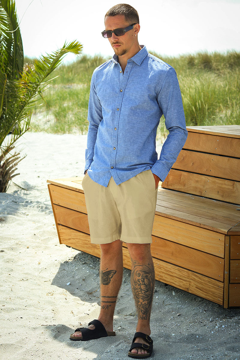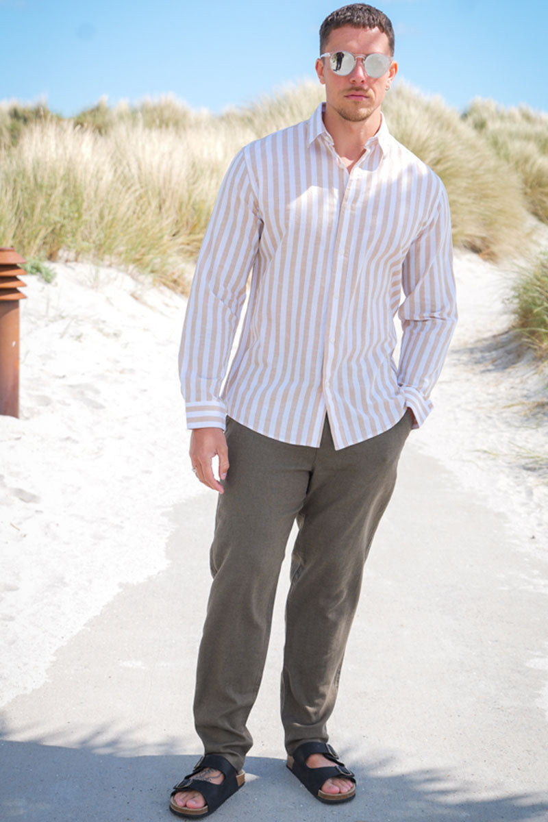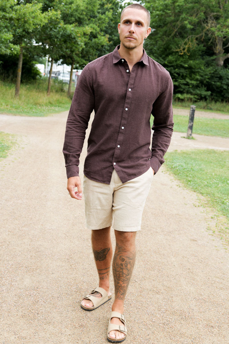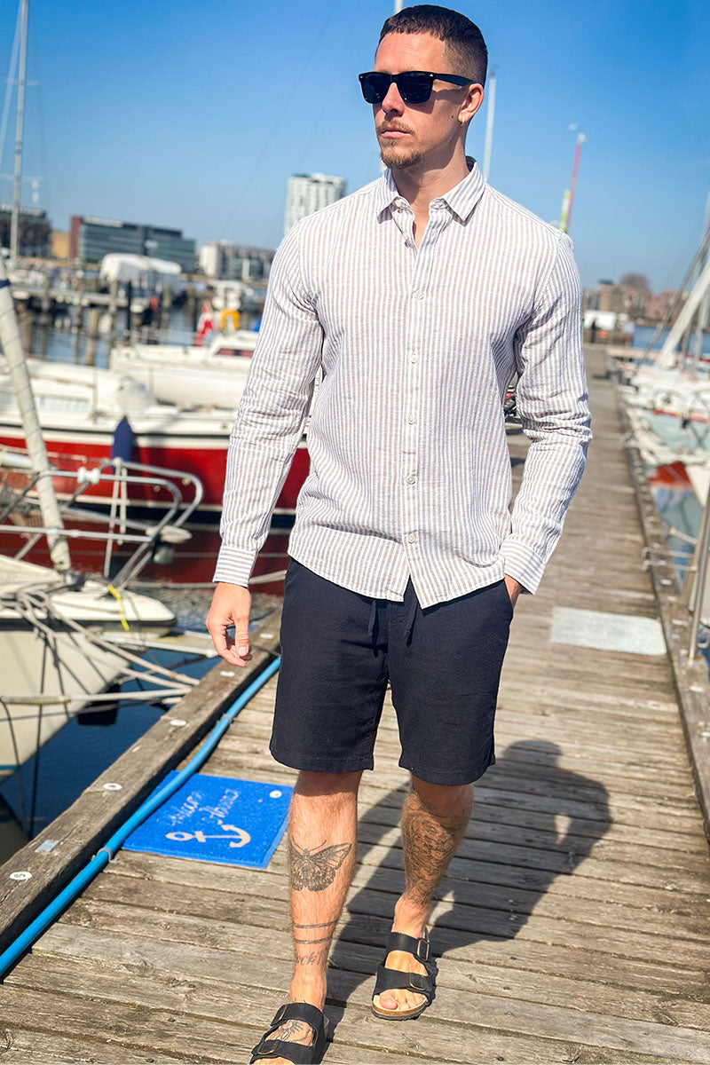 Vores hør kollektion her hos 2trendy kan bruges til enhver anledning, men egner sig især godt til de mange festlige sommerarrangementer, til sommerhusturen, eller ferien sydpå. Hvad end det er en afslappet havefest, en klassisk grillaften eller bare en tur til stranden, så er du sikret god stil med tøj fra vores hør kollektion. Prøv f.eks. en langærmet hørskjorte sammen med et par af vores hørbukser og et par lækre sandaler. Du kan også køre den helt casual og prøve en af de kortærmede hørskjorter sammen med et par af vores hørshorts. Der er mange muligheder - fælles for dem alle er dog, at hør er utrolig komfortablet, varmeregulerende og stilfuldt. Vi har både ensfarvede, stribede og mønstrede hørskjorter, samt hørbukser og shorts i jordnære farver, så du kan altid finde din egen stil, hvad end du er til det mere laid back look, eller den mere frembrusende stil.