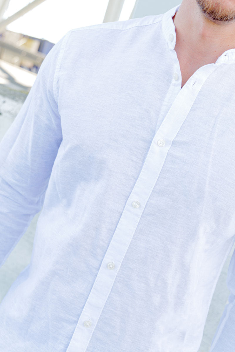 CAIDEN LS SOLID LINEN MAO SHIRT White
