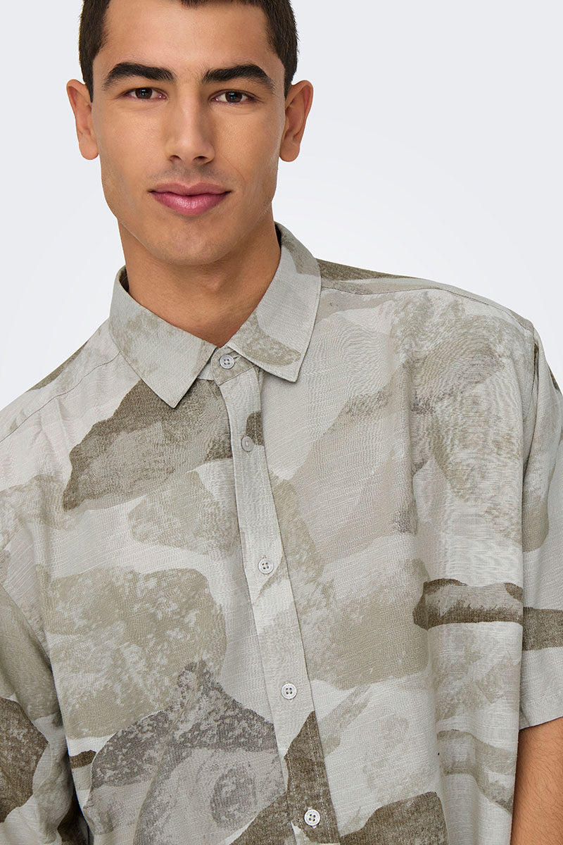 Bud Relaxed Fit AOP Linen Shirt Chinchilla