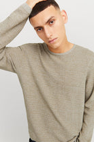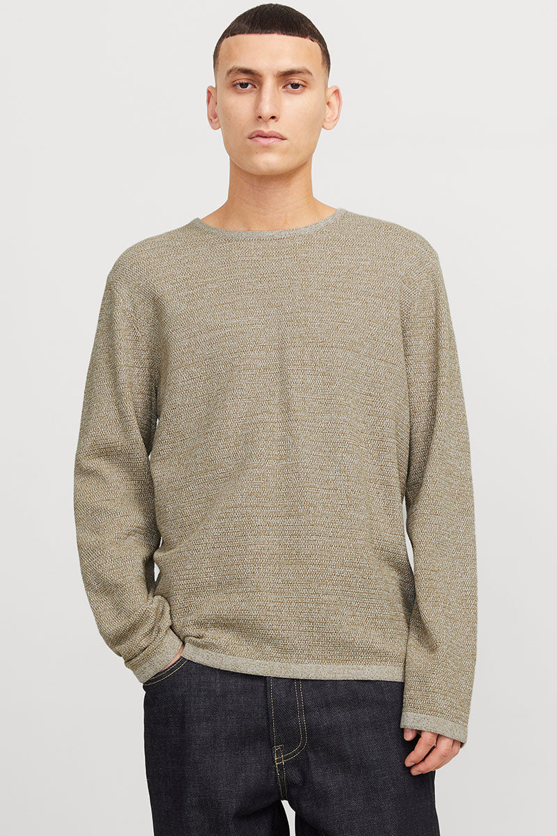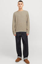 - Beigefarvet striktrøje med lange ærmer i relaxed fit