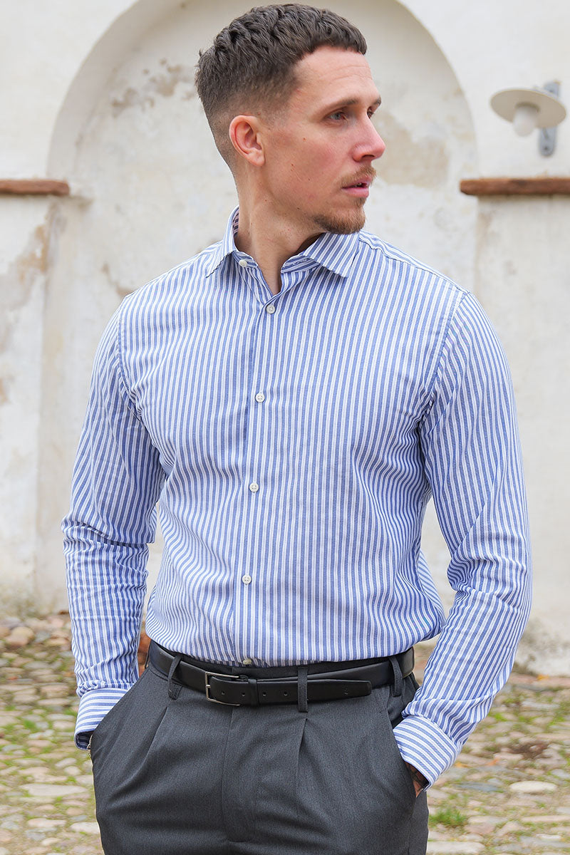 Parker Wrinkle Resistant Shirt LS Black Iris Stripe