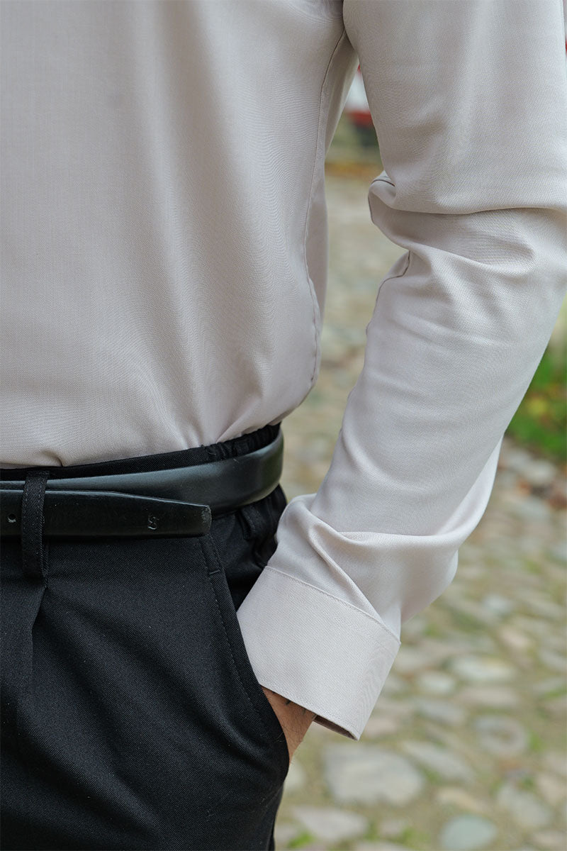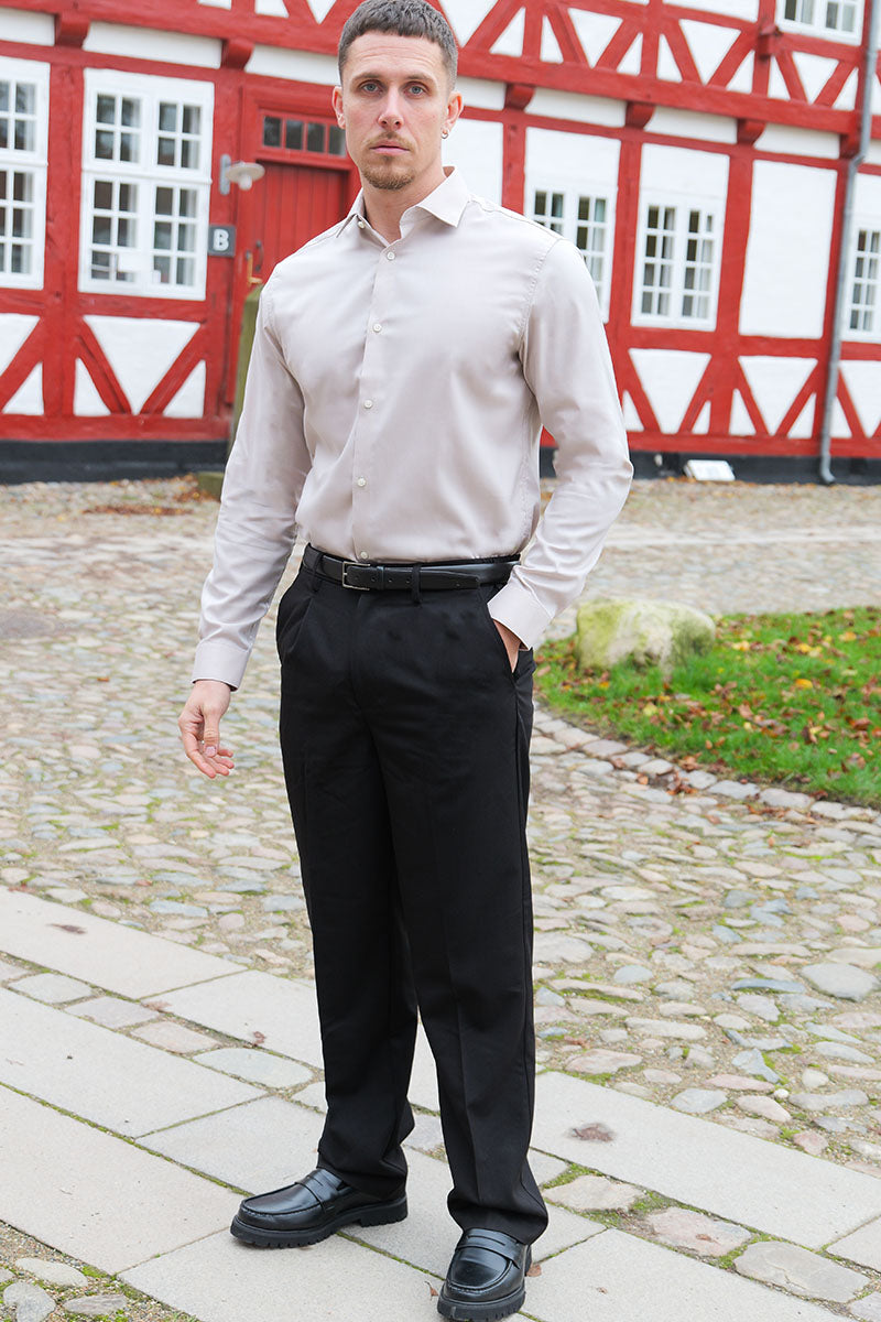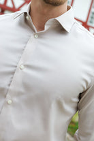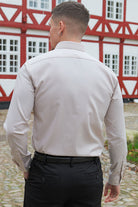 - Beigefarvet langærmet skjorte i slim fit