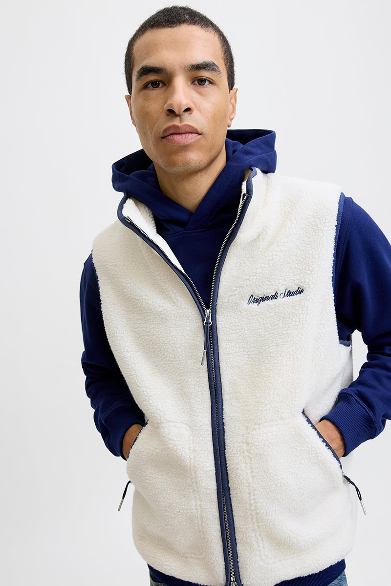 - Vesten har høj hals samt lynlåsluk foran og ved lommerne