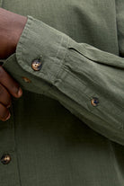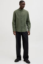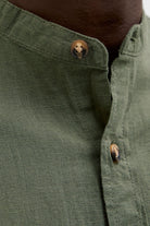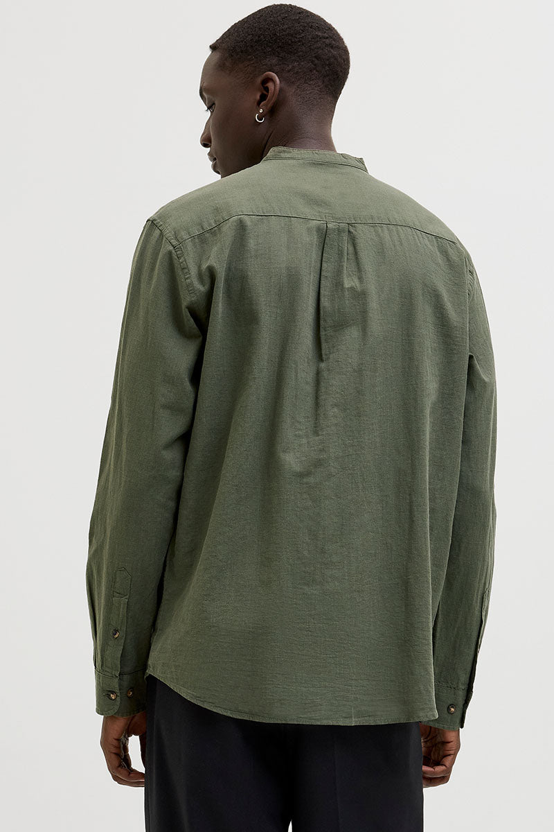 - Mørkegrøn langærmet hørskjorte i comfort fit