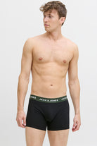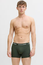 - Aller boxershortsene er mørke farver og har hvide detaljer på båndet i livet.