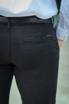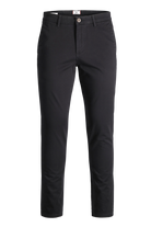 Jack & Jones Bowie Chinos i sort. Elegant slimfit chino med knaplukning og skjult lynlås. Kommer med fire lommer med logobadge ved baglommen. Kvalitet: 98% bomuld, 2% elastan.