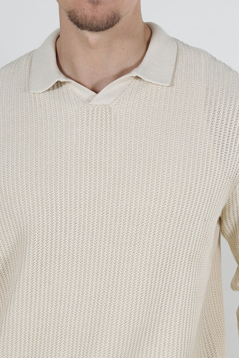 Relaxed Fit Structered Knit Polo Summer Sand