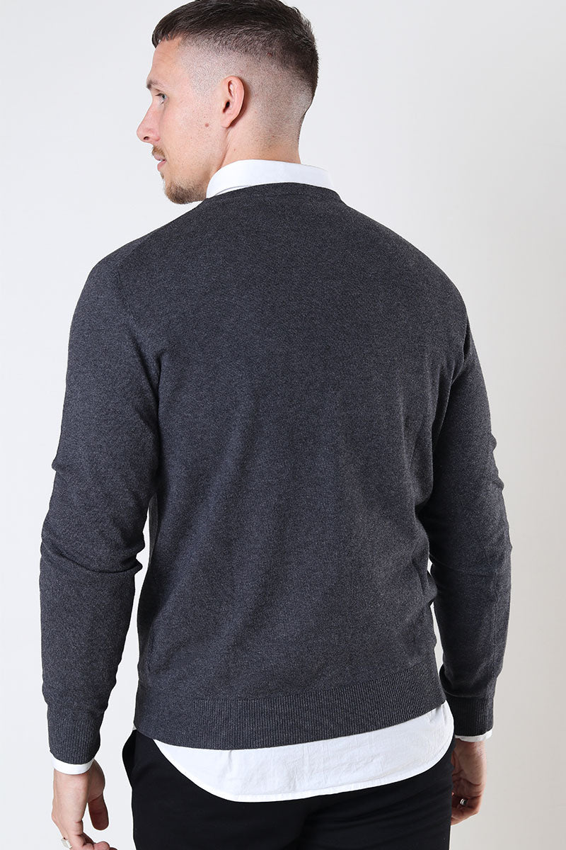 Emil Knit Cable Crew Neck Dark Grey Melange