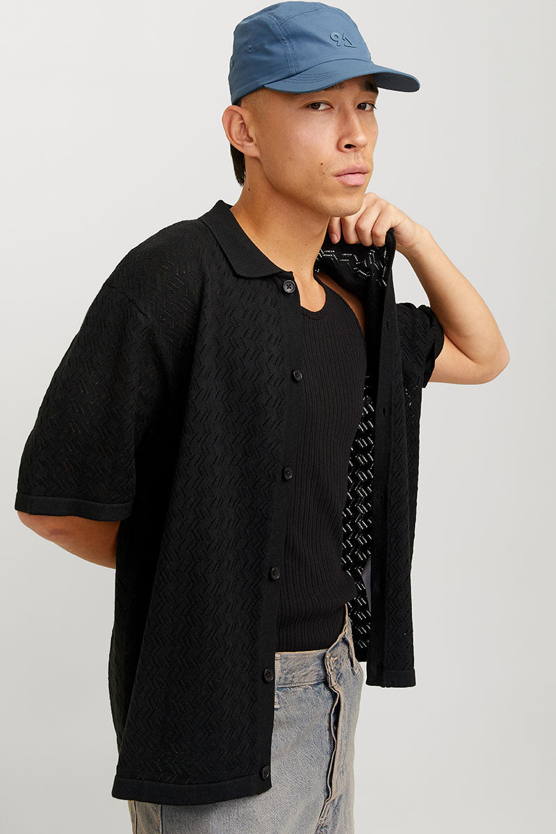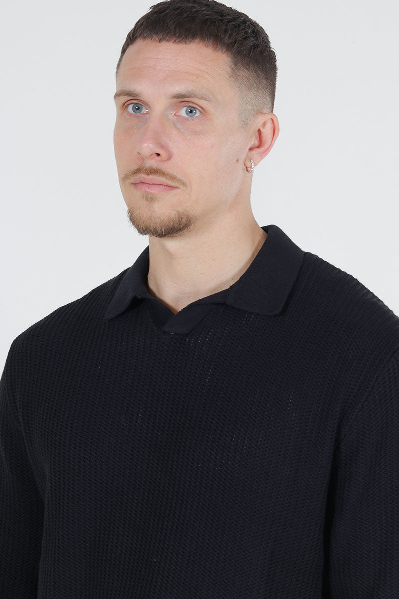 Relaxed Fit Structered Knit Polo Black