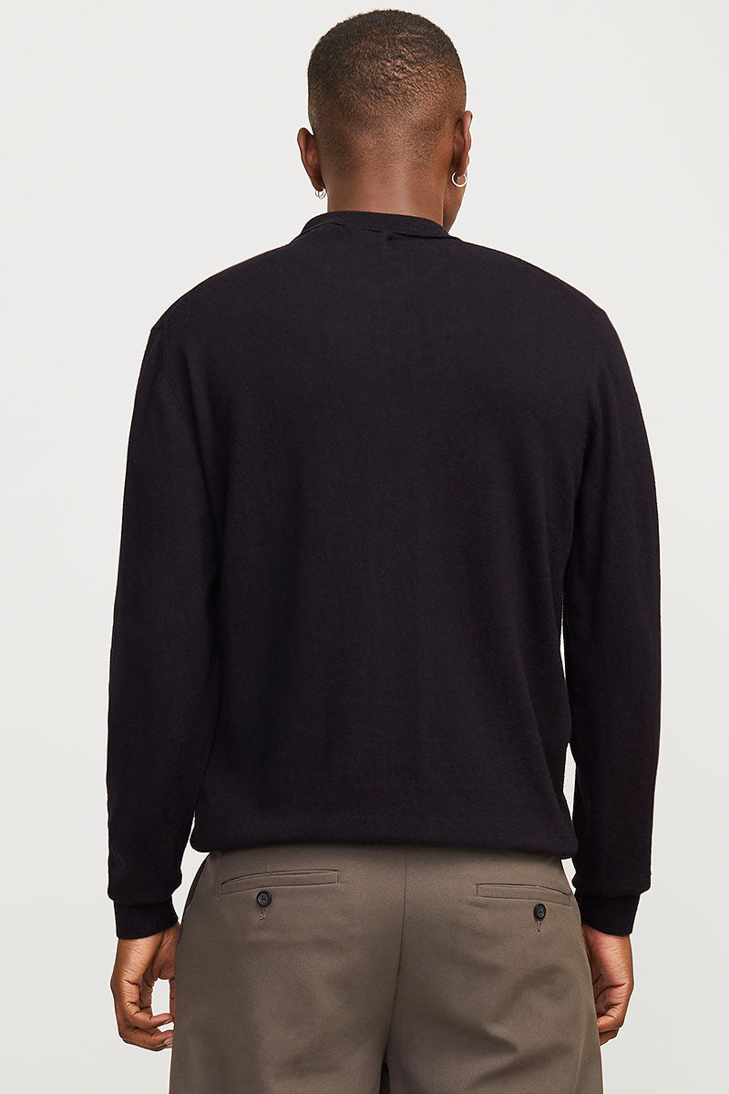 Emil Knit Polo Half Zip LS Black