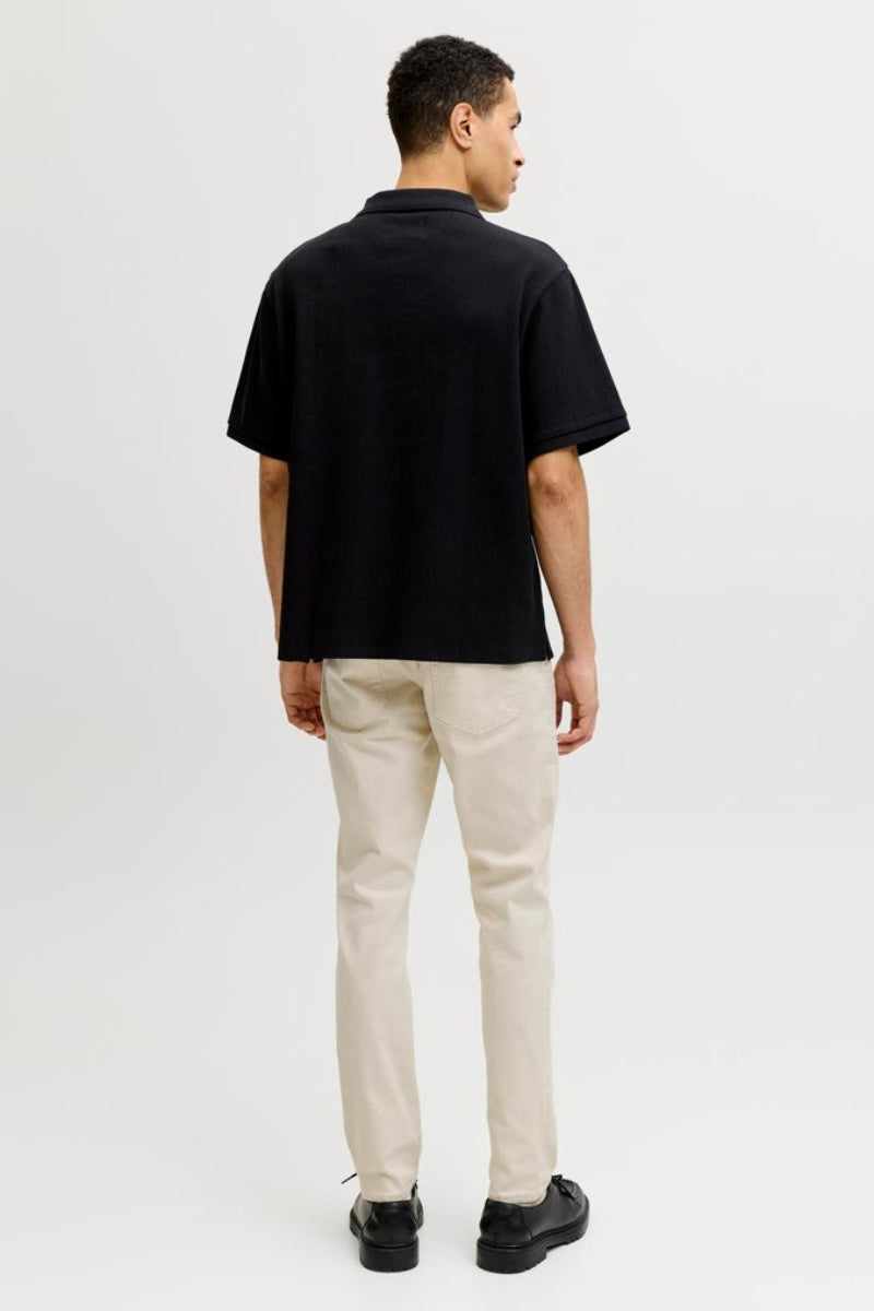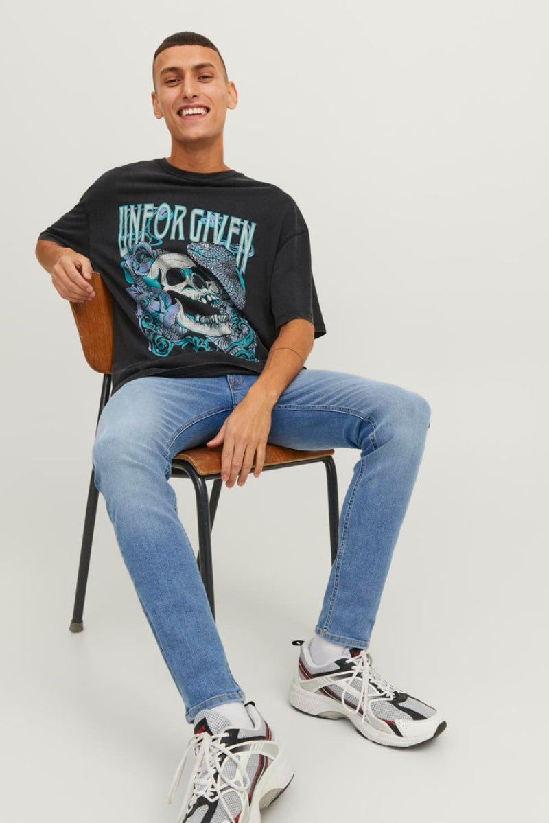 Er du i tvivl om, hvordan du skal style dit outfit med jeans, så du opnår det look du gerne vil have? Frygt ej, vil vil hellere end gerne give et par tips med på vejen. Det første du skal gøre er at finde ud af med dig selv, hvilken stilretning du bedst kan se dig selv i. Her kan der nævnes de overordnede typer: Den klassiske og stilede type. Den rockede og rå type. Den moderne, hipster type. Den sporty type. Eller den nede på jorden, men moderne type. Disse fem grupperinger er selvfølgelig langt fra alle de muligheder, der findes for at style sit outfit og sin generelle stil på. De kan dog fungere som et godt udgangspunkt, hvis man er lidt på bar bund ift. hvilke jeans man skal vælge, og hvordan man skal sætte dem med trøjer, sko og andet tilbehør. Til den klassiske og stilede type vil et par pæne jeans være vejen frem. De skal gerne være ensfarvede i en mørk blå eller en beige farve. Gå uden om huller og spraglede detaljer, men hold dig til det stilsikre, rene look. Sæt gerne disse jeans sammen med en skjorte eller blazer, og fuldend stilen med et klassisk armbåndsur og et par lækre herrestøvler. Den rockede og rå type vil befinde sig rigtig godt i et par ripped jeans eller biker jeans, da begge har fede detaljer, og et slidt, råt look. Disse jeans går super godt sammen med en oversized tee, en slidt læderjakke og en masse tatoveringer. Hop i et par rå støvler, og du er klar! Jeans til den moderne, hipster type vil være de fede denim chino modeller, der er enormt moderne i øjeblikket. Lav nogle opbuk for neden i buksebenet og tilføj dine yndlings sneakers. Der er mange muligheder for valg af trøjer og jakker til denne stil. Alt fra casual skjorter til bomber jakker er sikre valg. Den sporty type skal gerne have et par jeans, der er behagelige at have på. Det er typisk ikke slim fit modellen, der er denne types første valg. Men en lang række af vores andre jeans vil være perfekte hertil. Alle dine hoodies og t-shirts med sportslogoer går perfekt til vores jeans. Tilføj gerne en cap og dine sneakers. Den sidste type, som tager det lidt mere stille og roligt, når der skal sammensættes outfits kan med fordel vælge at par af vores neutrale jeans, og sætte stort set alt sammen med disse. Når bukserne er afdæmpede, er der faktisk frit valg på alle hylder, når der skal vælges overdele. I senere tid er loose fit jeans også blevet enormt populære, og dem kan du med fordel style med andre oversized produkter f.eks. t-shirts og sweats.