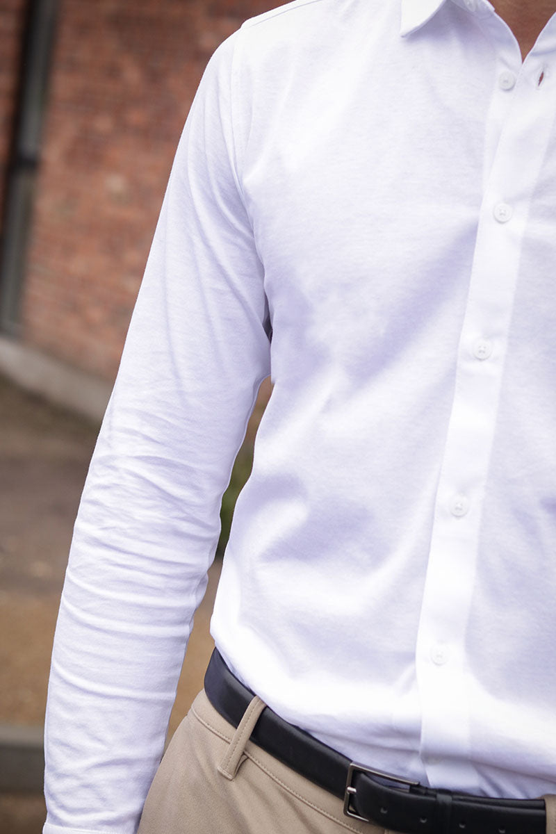 Comfort Shirt i farven White er en stilfuld og lækker tætsiddende skjorte, der passer perfekt til enhver formel eller uformel anledning. Skjorten er designet med en klassisk krave og knaplukning, hvilket giver den et sofistikeret look. Skjorten har også massere af stretch, hvilket sikrer en god pasform og komfort. -