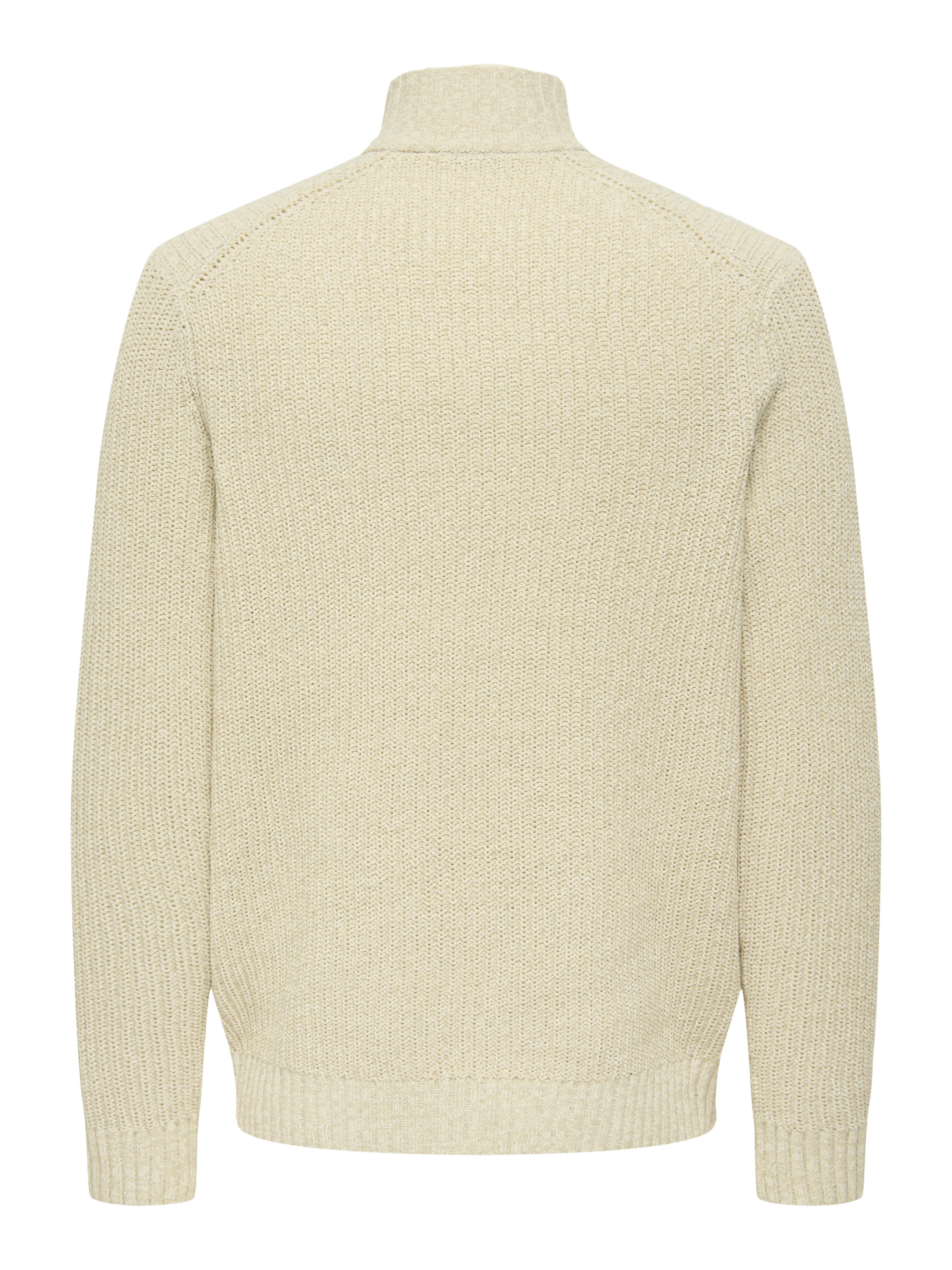 - Grov strikket trøje med høj hals og half-zip