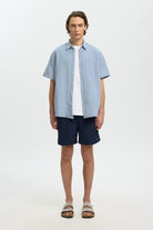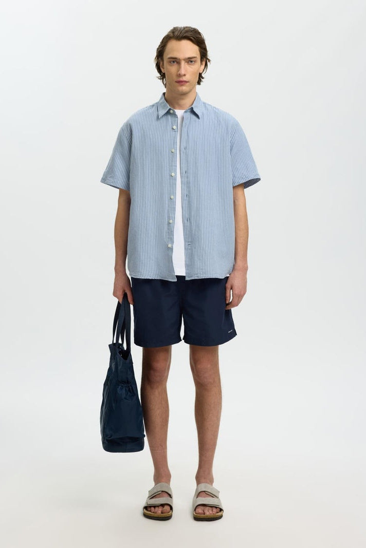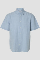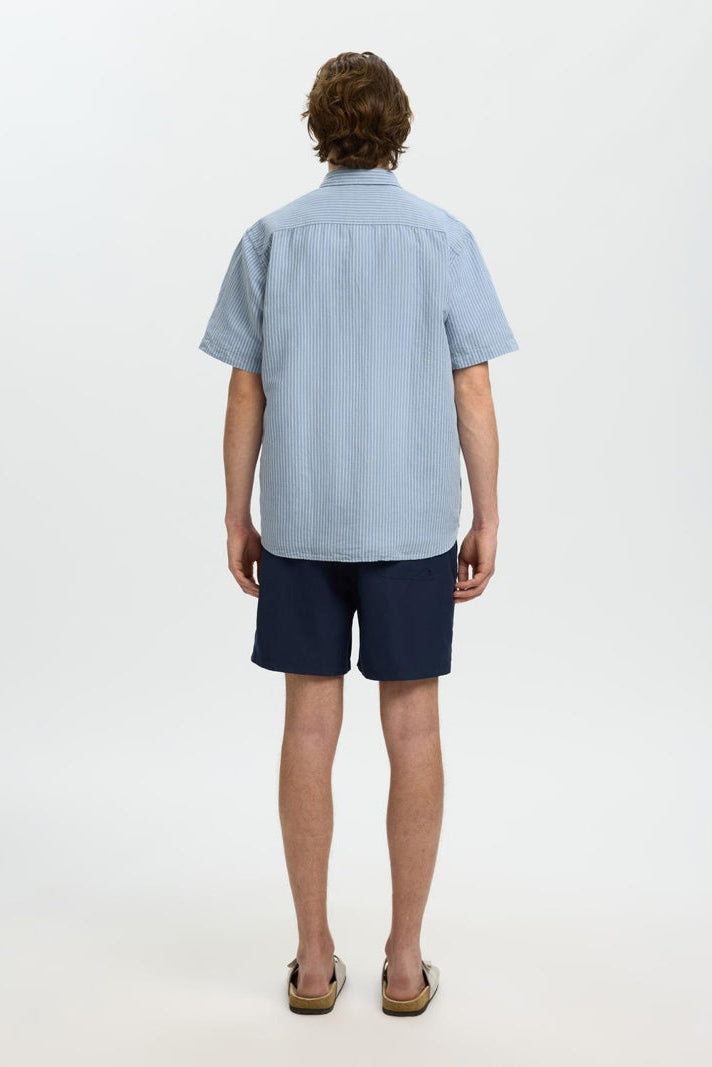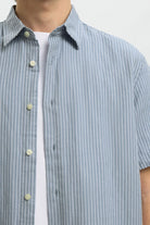 Denne lette skjorte er designet til at give et afslappet og sommerligt look. Den har en klassisk skjortekrave og korte ærmer, der gør den ideel til varmere dage. Skjorten lukkes med knapper og har knapmanchetter, hvilket giver et stilrent finish. Pasformen er regular fit, som sikrer komfort og bevægelsesfrihed gennem hele dagen. Den støvede blå farve med striber tilfører et subtilt og elegant udtryk.