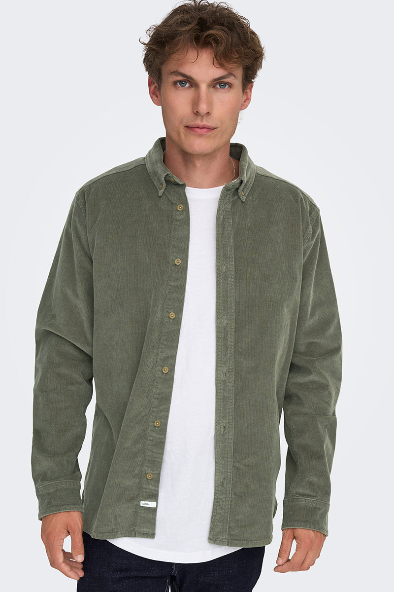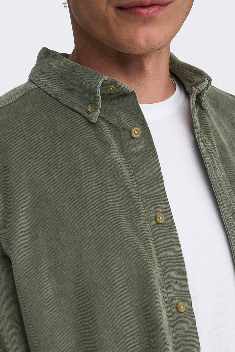 Michael Regular Fit Stretch Cord Shirt LS Castor Gray