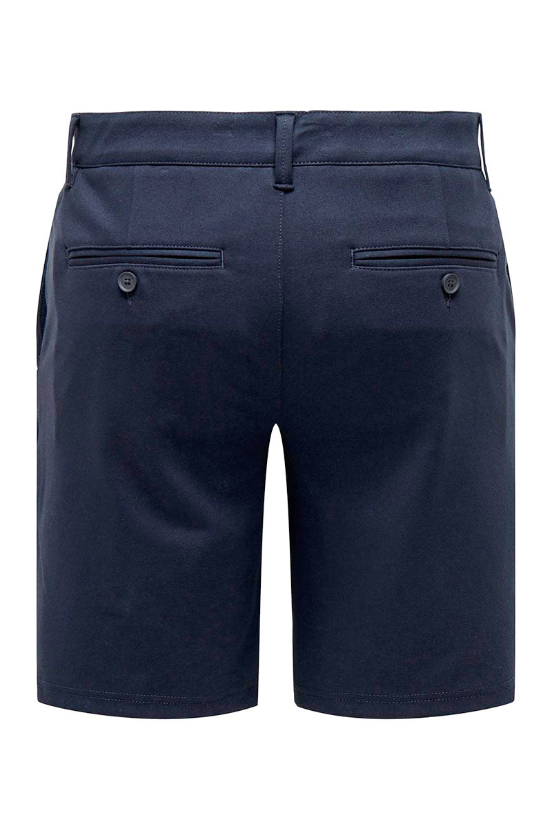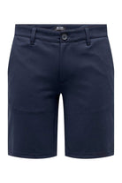Only & Sons Mark shorts i farven night sky. Fede shorts i et super komfortabel materiale med stretch. Shortsene lukkes med knap og lynlås, og har et lille logo badge ved venstre forlomme. Kommer med fire lommer, hvoraf baglommerne er med knap. Kvalitet: 64% Viskose, 31% Polyester, 5% Elastan. SKU: 125000001659