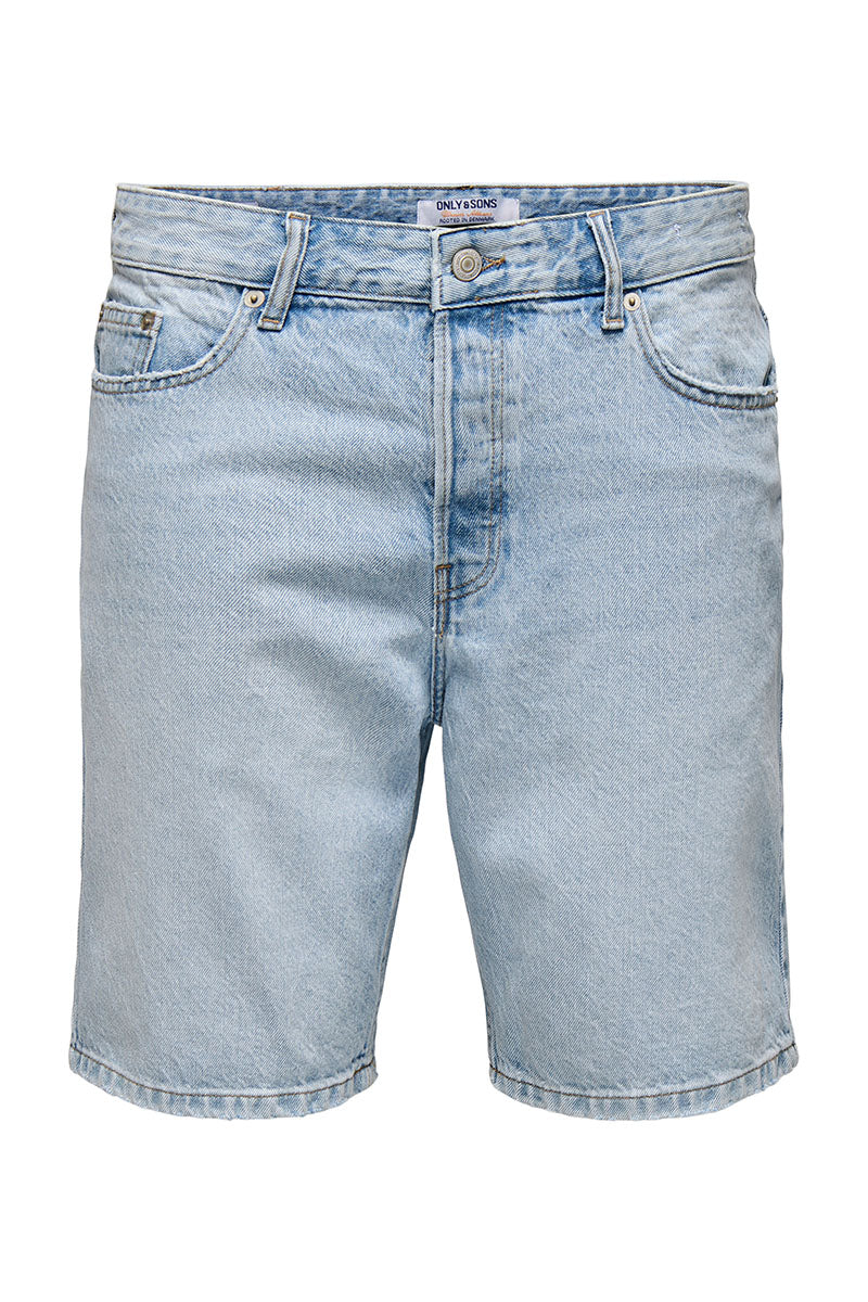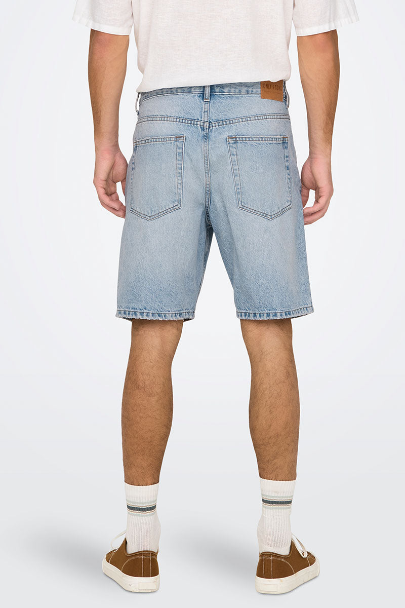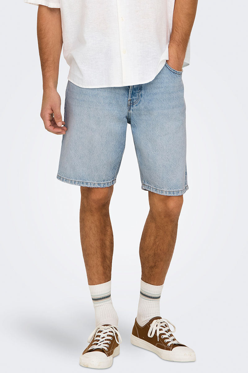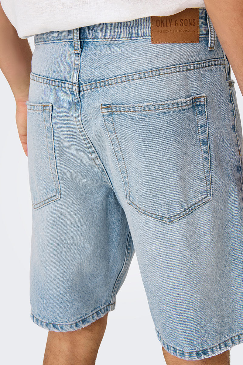 Edge Straight Fit Denim Shorts Light Blue Denim