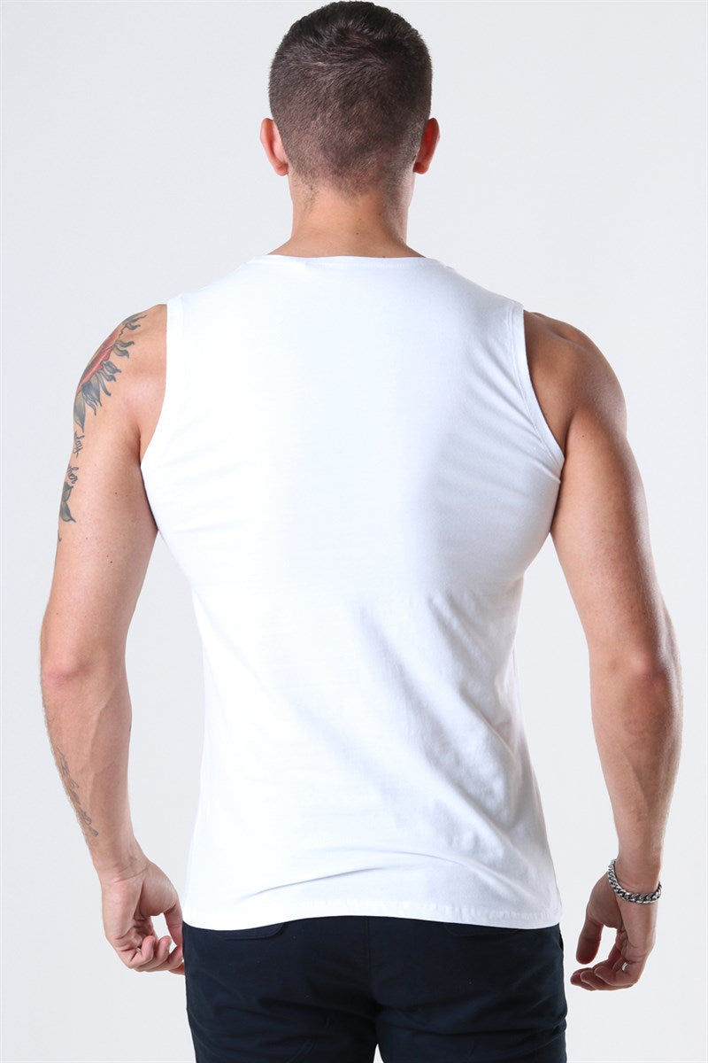 Muscle Fit Tank-Top i behagelig kvalitet med stretch. Kommer her i 2-pack, hvor begge tank tops er hvide. O-neck halsåbningen og ærmerne er afsluttet med syninger. Der er ingen logolabels. Muscle fit pasform. Kvalitet: 92% Organisk Bomuld, 8% Elastan