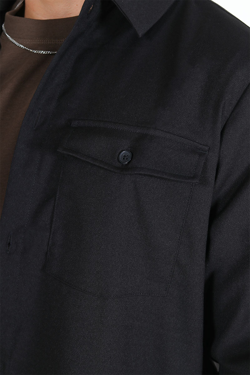 - Ensfarvet langærmet overshirt.