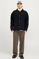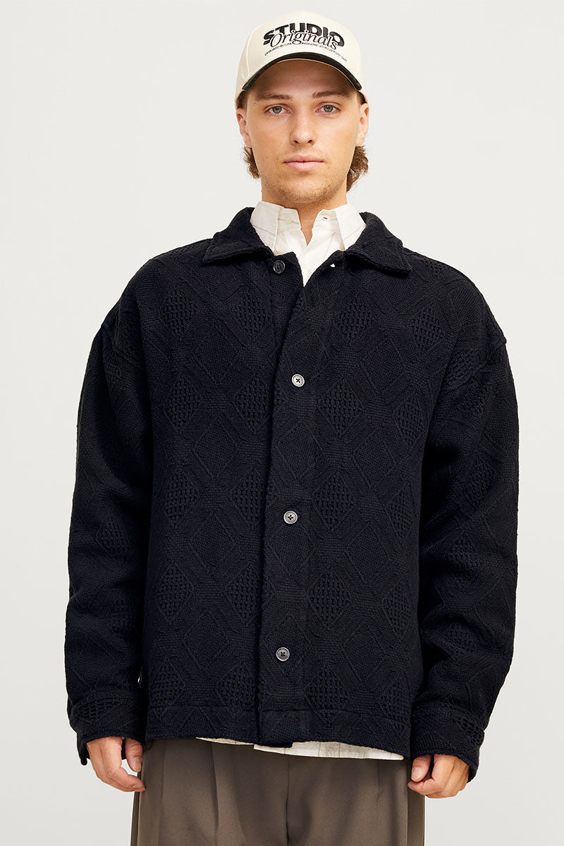 - Sort langærmet overskjorte med vævet mønster i wide fit