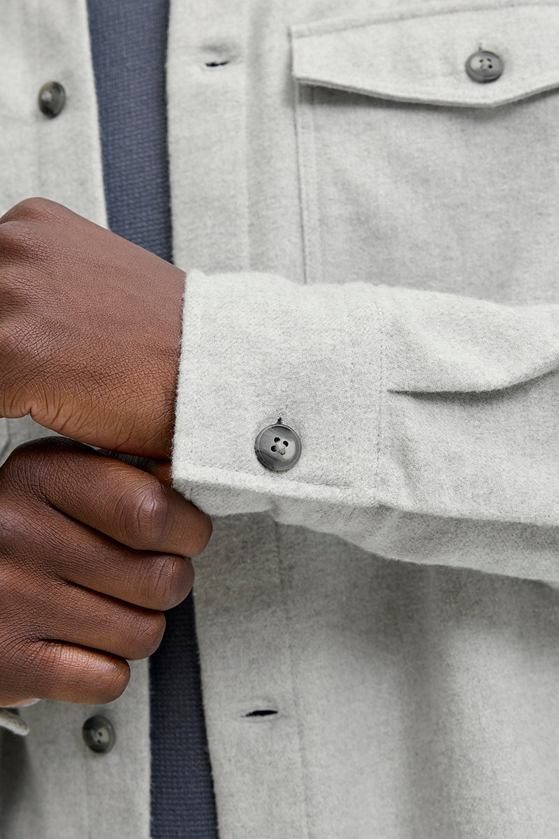 - Overshirten har to lommer foran, en klassisk krave samt ærmer med knappelukning