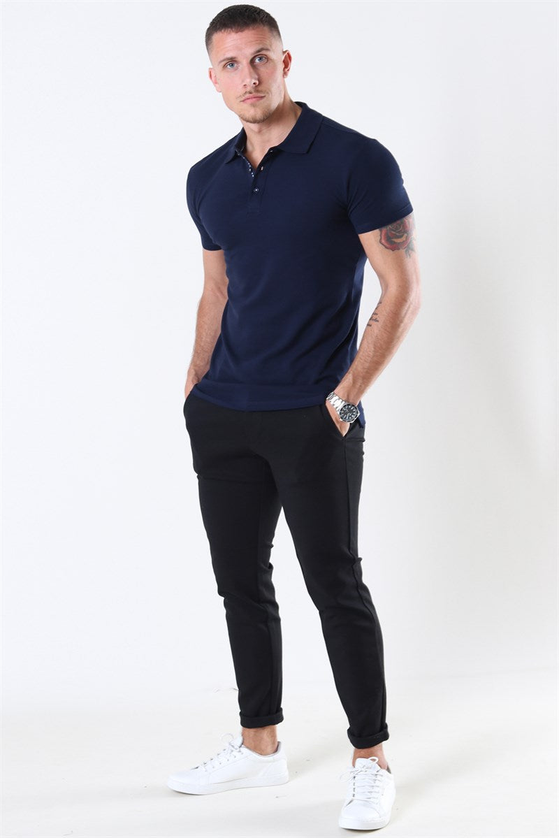 Muscle fit Polo i farven Blue Navy er lavet af 92% økologisk bomuld og 8% elastan, der gør den lækker blød og stretchy.