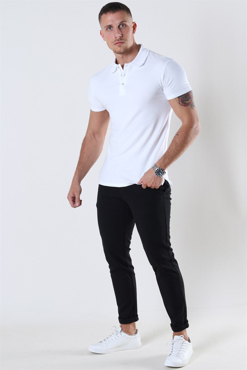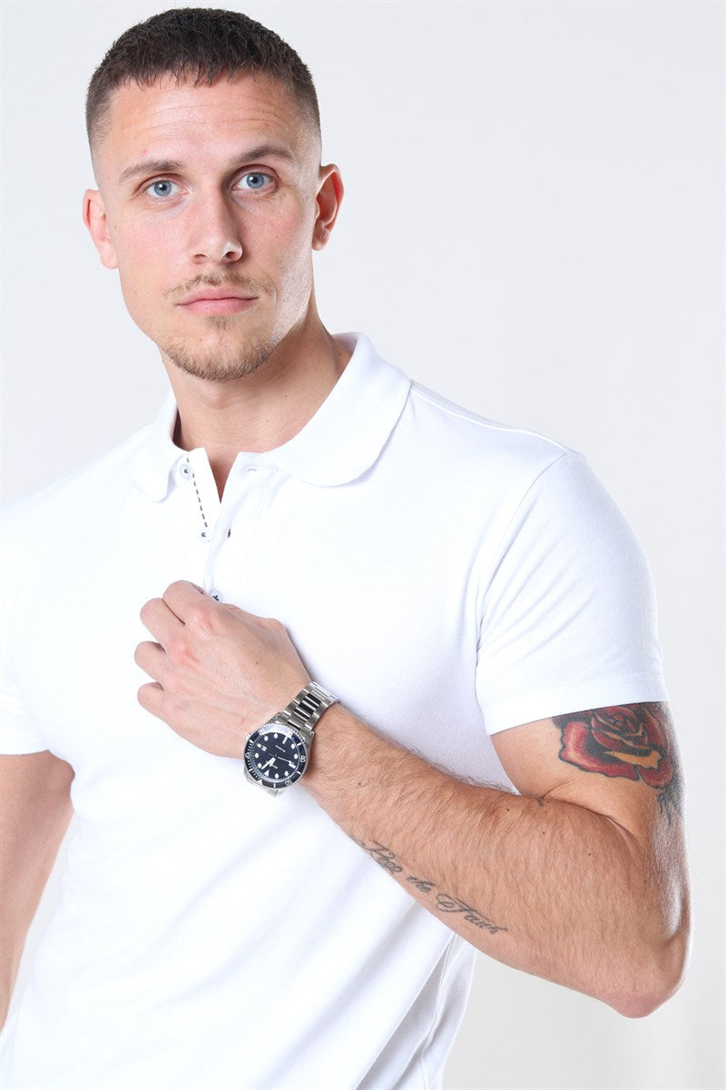 Muscle fit Polo i farven White er lavet af 92% økologisk bomuld og 8% elastan, der gør den lækker blød og stretchy.