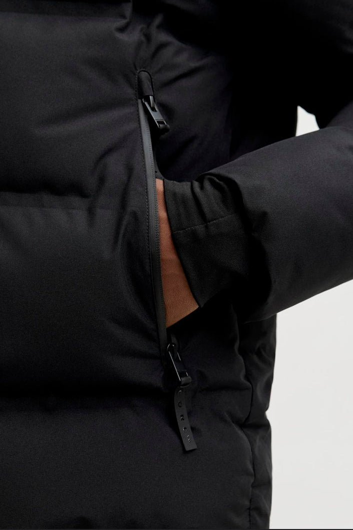 En kort og varm jakke, der er ideel til de kolde vinterdage. Jakken er fyldt med syntetisk fjerpolstring, som gør den let og behagelig at have på, samtidig med at den holder dig varm. Den er lavet af vævet stof, som er et stærkt og holdbart materiale uden stræk, hvilket sikrer en robust kvalitet. Jakken har en hætte med snørrejustering, lange ærmer og ribkant ved ærmegabene for ekstra komfort og beskyttelse mod kulden. Den lukkes med lynlås og er foret med polyester, hvilket øger komforten yderligere.