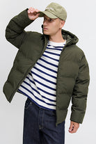 - Klassisk pufferjakke med høj hals og hætte