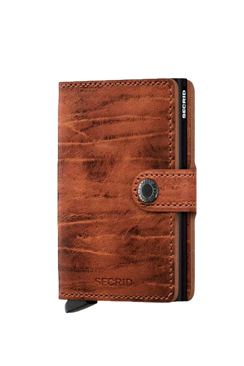 Secrid miniwallet er en kombineret tegnebog og kortholder i en. Kan opbevare op til fem kort, som hurtigt kan skubbes op så du nemt kan komme til dine kort. Der er ligeledes plads yderligere fire kort, sedler og kvitteringer. Beskytter mod slid og RFID scanning. Fremstillet i aluminium og er beklædt med whiskey farvet læder, hvilket givet et rustik og eksklusivt udtryk. Kortet måler: 10,2 x 6,5 x 2,1 cm og har en vægt på 72 g.