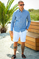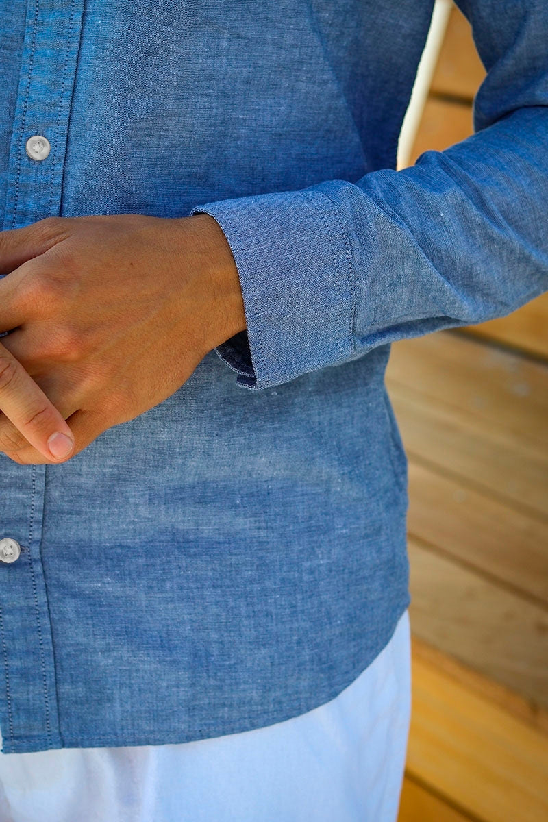 Slim Sun Linen Shirt LS Medium Blue Denim