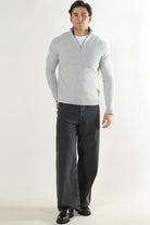 Dane LS Structure Knit Half Zip Light Grey Melange