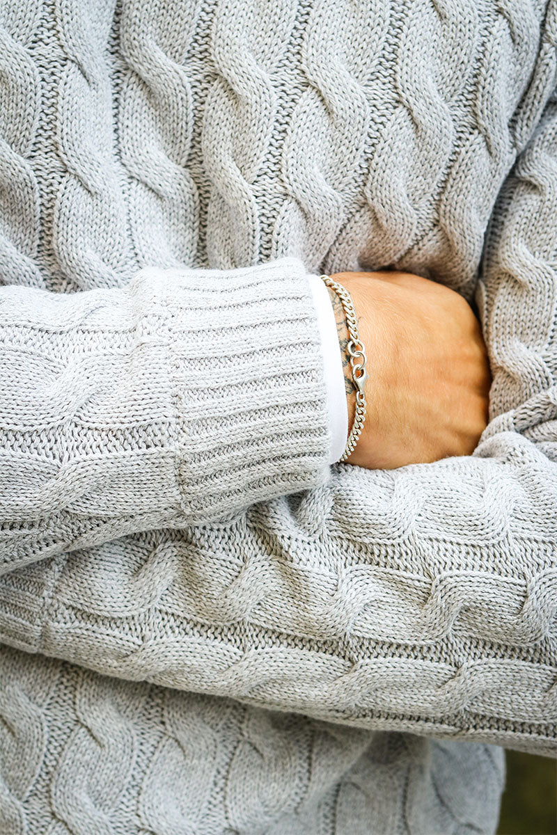 Kicker Cable Knit Crew Neck Light Grey Melange