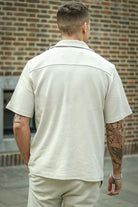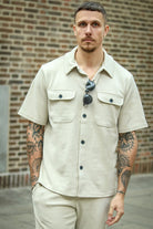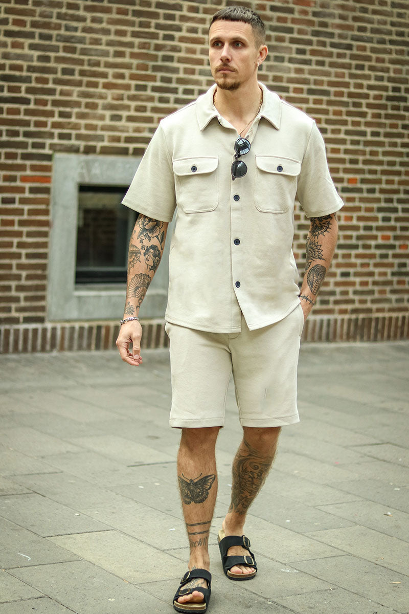 - Beige farvet skjorte med korte ærmer