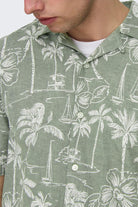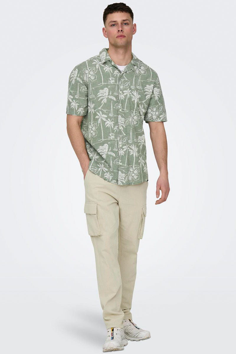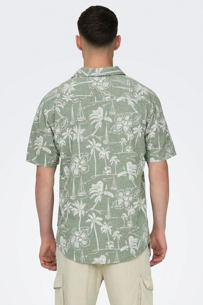 Caiden SS Regular Hawaii Linen Shirt Swamp