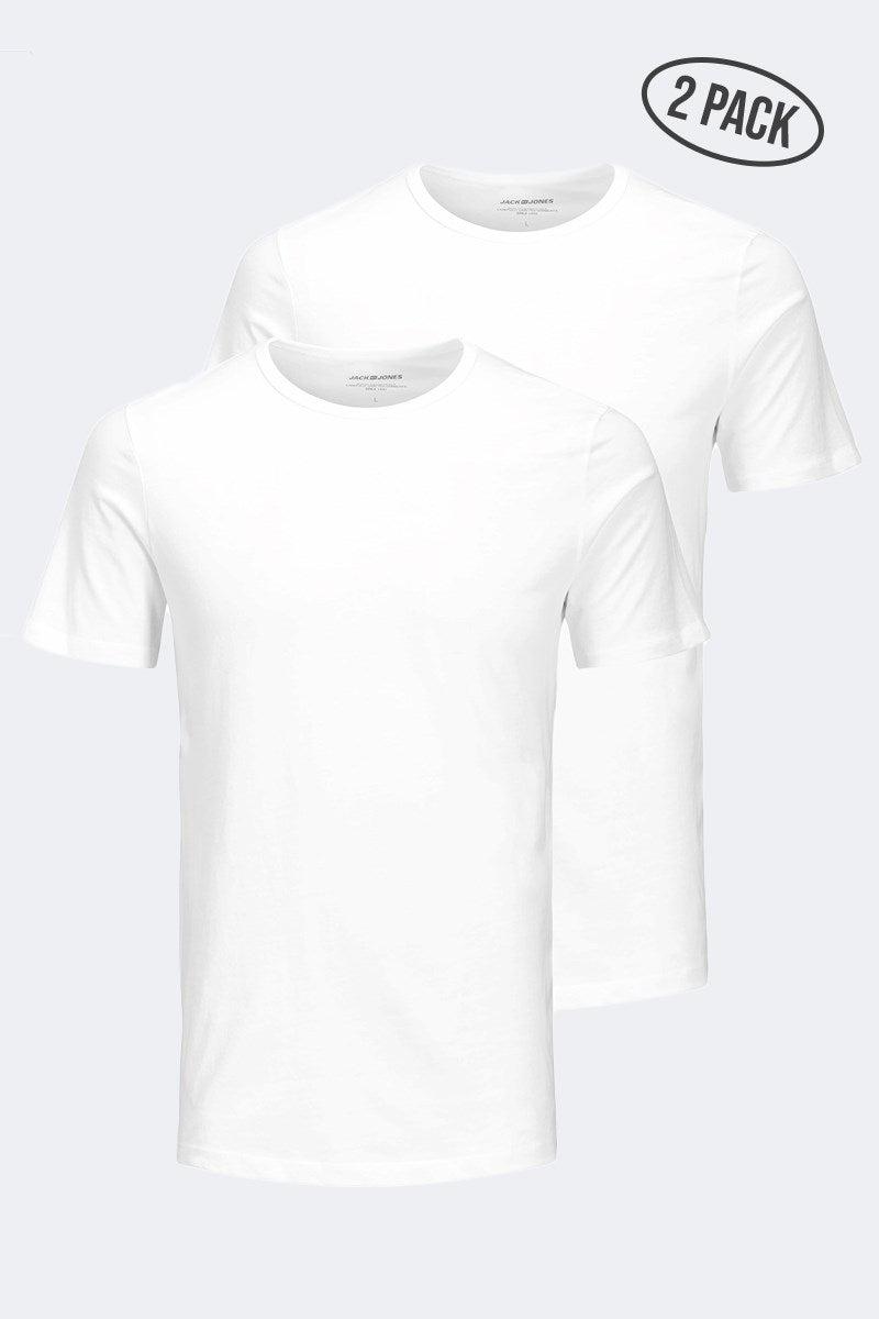 Jack & Jones T-shirt kommer her i en basic 2-pack, som indeholder to hvide t-shirts. Den kommer i en regular og comfort pasform. De har klassisk ribkant i halsen og er uden logoer. Kvalitet: 100% Bomuld