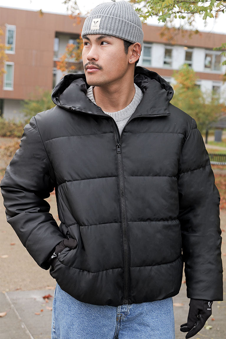 En god pufferjakke er først og fremmest let med fjerforing, der slutter sig tæt til kroppen. En god idé vil være at vælge en hoodiemodel, der kan tages på til et casual street look. Sørg desuden for at vælge et vandafvisende materiale – også ved ærmekanten og lommerne.