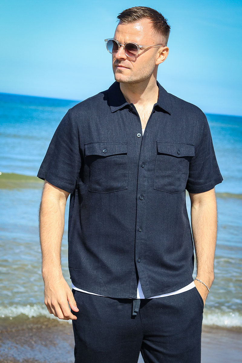 Kari Relaxed Cuba Shirt Viscose Linen Dark Navy