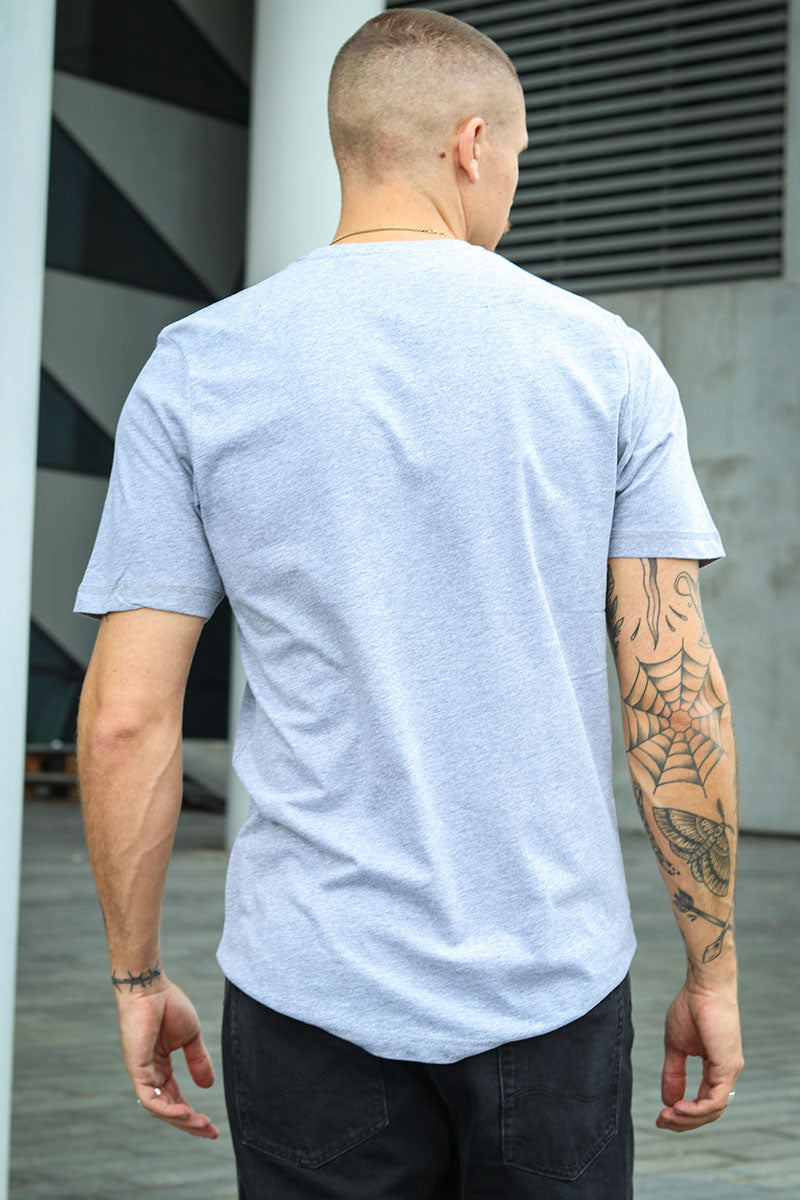 Materiale: T-shirten er lavet i 85 % kæmmet bomuld og 15 % viskose, hvilket giver en blød, fleksibel og let meleret finish. Single jersey-kvaliteten sikrer en glat og ensartet overflade, der holder sig flot vask efter vask.