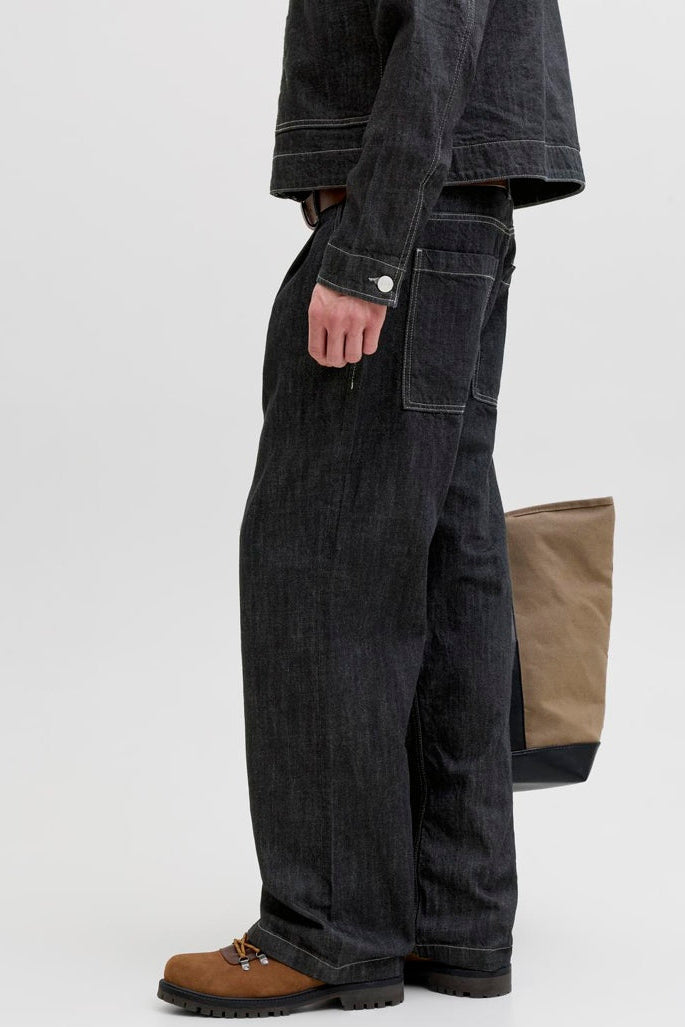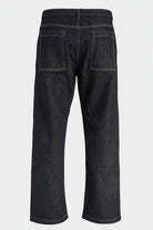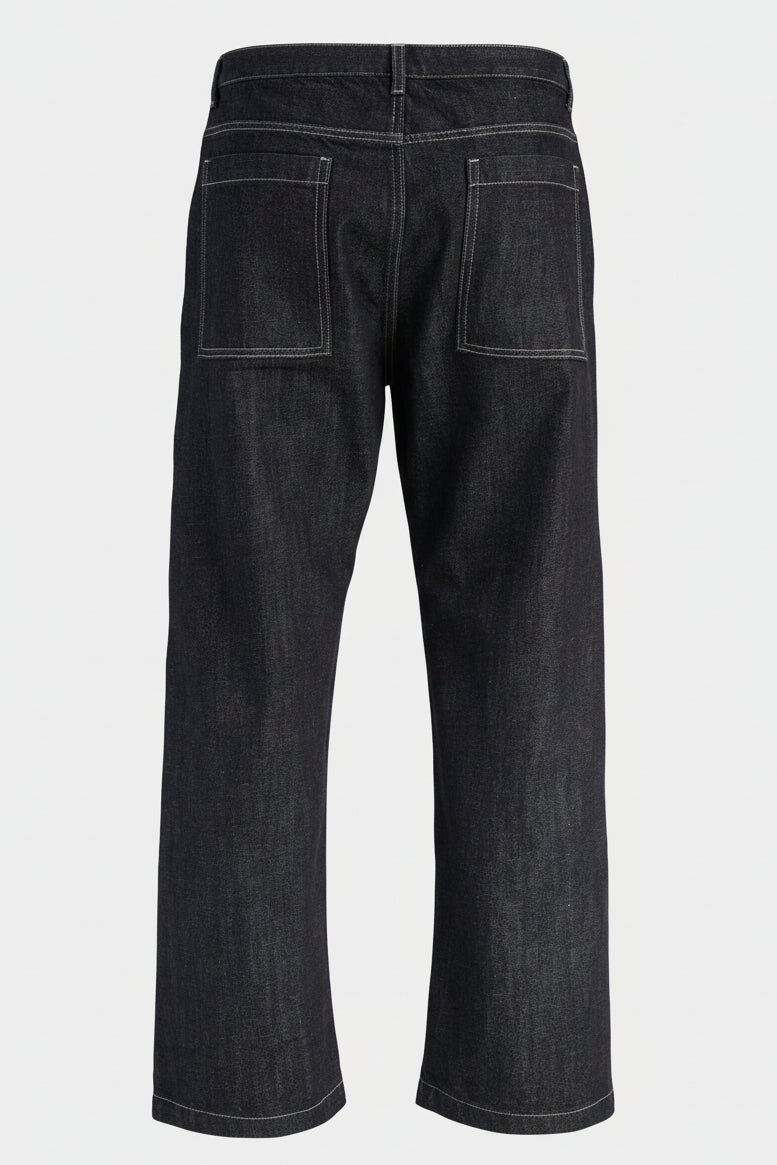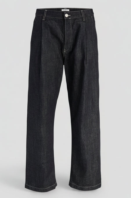 Disse Wide Fit jeans i en mørk blå denimfarve kombinerer et klassisk straight fit med en høj talje for en komfortabel og moderne pasform. Materialerne er nøje udvalgt med 80% økologisk bomuld direkte fra gården, blandet med 20% genanvendt bomuld, hvilket gør dem til et bæredygtigt valg. Den bløde og åndbare bomuld sikrer komfort i hverdagen, mens den blide vask giver et råt udtryk. Lukningen består af en funktionel lynlås, der sikrer nem og sikker lukning.