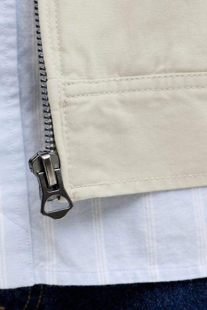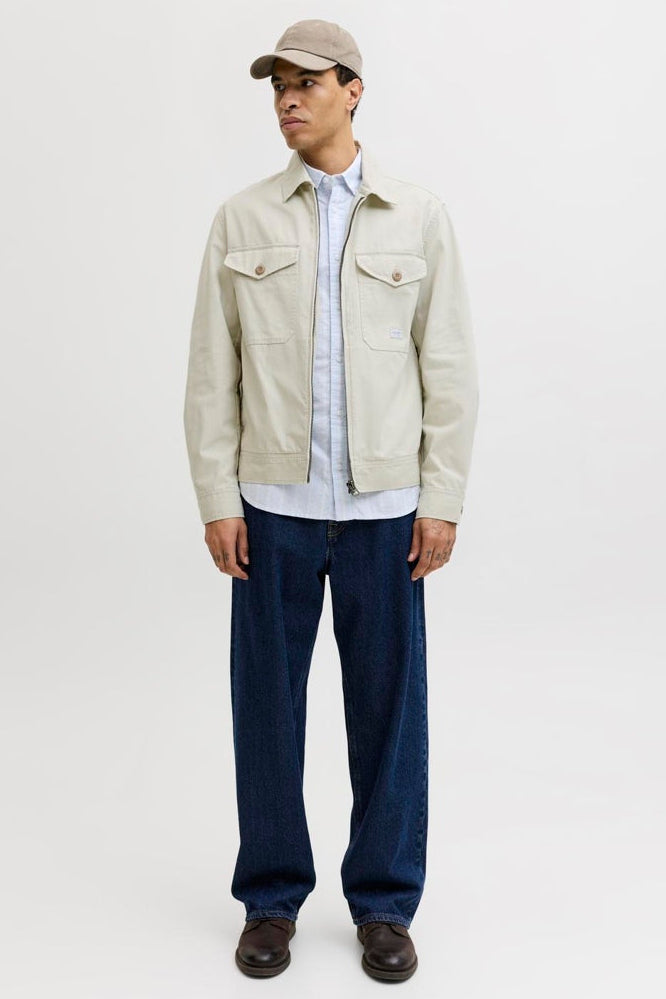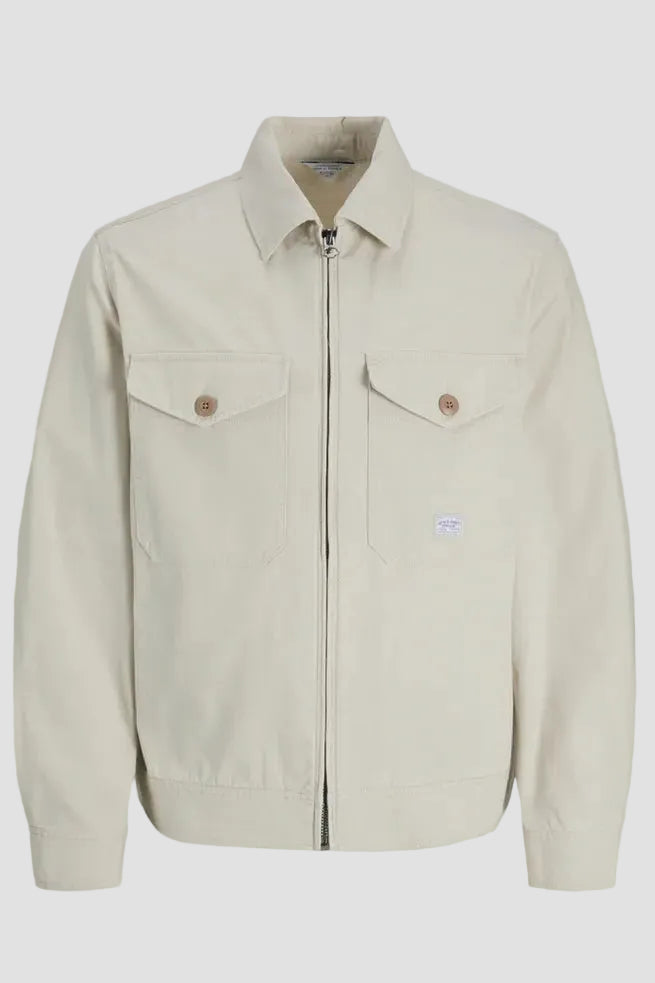Denne jakke er designet til en afslappet stil og egner sig perfekt til hverdagsbrug. Den er fremstillet i et stærkt og holdbart vævet bomuldsstof, som ikke har strækbarhed som strikkede materialer. Jakken har en kort længde med en klassisk skjortekrave og lange ærmer afsluttet med knaplukning ved manchetten. Den lukkes foran med lynlås og har brystlommer med knaplukning, der tilføjer både funktionalitet og stil. Et diskret badge bidrager til det samlede udtryk.
