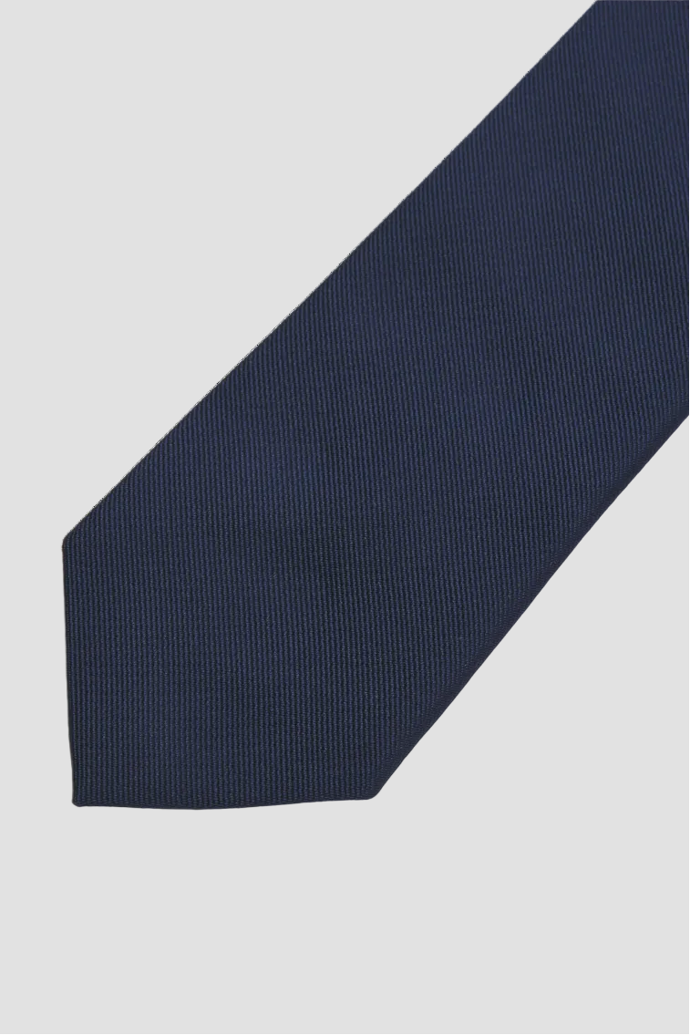 Dette slips har en struktureret overflade og en dyb navyblå nuance, der giver et klassisk og elegant udtryk. Det er fremstillet af 100% genanvendt polyester, hvilket sikrer både holdbarhed og et bæredygtigt valg. Dette slips er perfekt til formelle anledninger, hvor et velklædt udseende er essentielt.