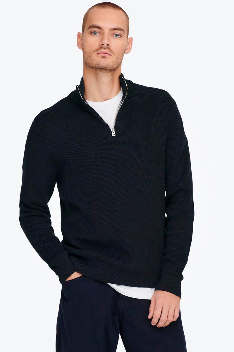 PHIL COTTON HALF ZIP KNIT Dark Navy