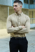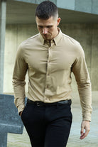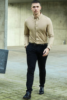 Theodore LS Stretch Shirt Dark Beige