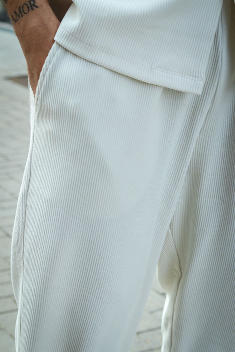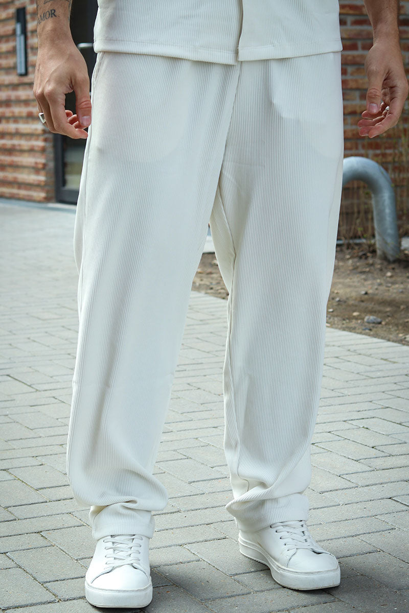 - Elegant farvekombination: Bukserne har en smuk farvekombination af off-white og beige, der giver et elegant og sofistikeret look. Farverne er lette at kombinere med andre farver og prints, så du kan skabe et unikt og personligt outfit.