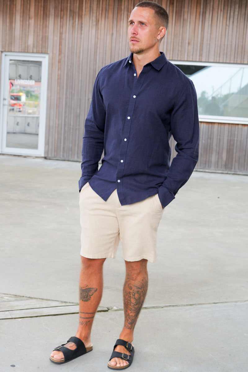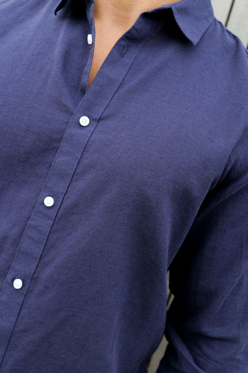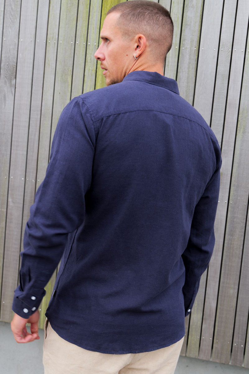 Caiden LS Linen Shirt Night Sky