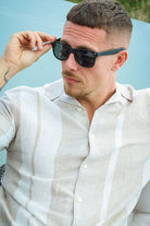 Caiden SS Stripe Linen Resort Shirt Vintage Khaki